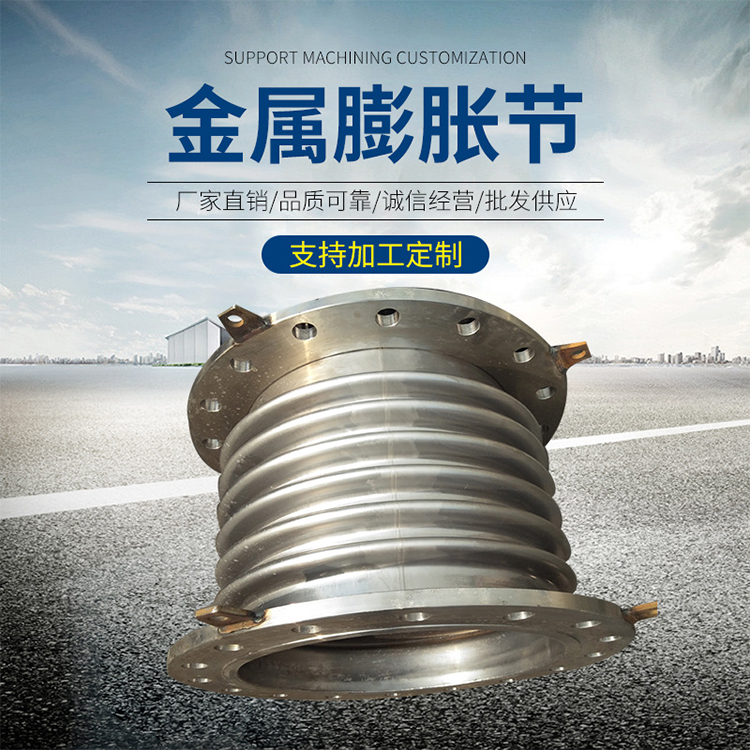 膨脹節(jié)習慣上也叫補償器,或伸縮節(jié)。由構成其工作主體的波紋管(一種彈性元件)和端管、支架、法蘭、導管等附件組成。 膨脹節(jié)是為了補償因溫度差與機械振動引起的附加應力,而設置在容器殼體或管道上的一種撓性結構。利用其工作主體波紋管的有效伸縮變形,以吸收管線、導管、容器等由熱脹冷縮等原因而產生的尺寸變化,或補償管線、導管、容器等的軸向、橫向和角向位移。也可用于降噪減振、供熱上,為了防止供熱管道升溫時,由于熱伸長或溫度應力而引起管道變形或破壞,需要在管道上設置補償器,以補償管道的熱伸長,從而減小管壁的應力和作用在閥件或支架結構上的作用力。